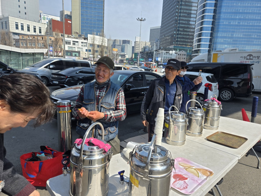 우리보다 먼저와 계신 노숙인이지만 우리를 도와 주시는 노숙인 분들의 미소가 아름답습니다.